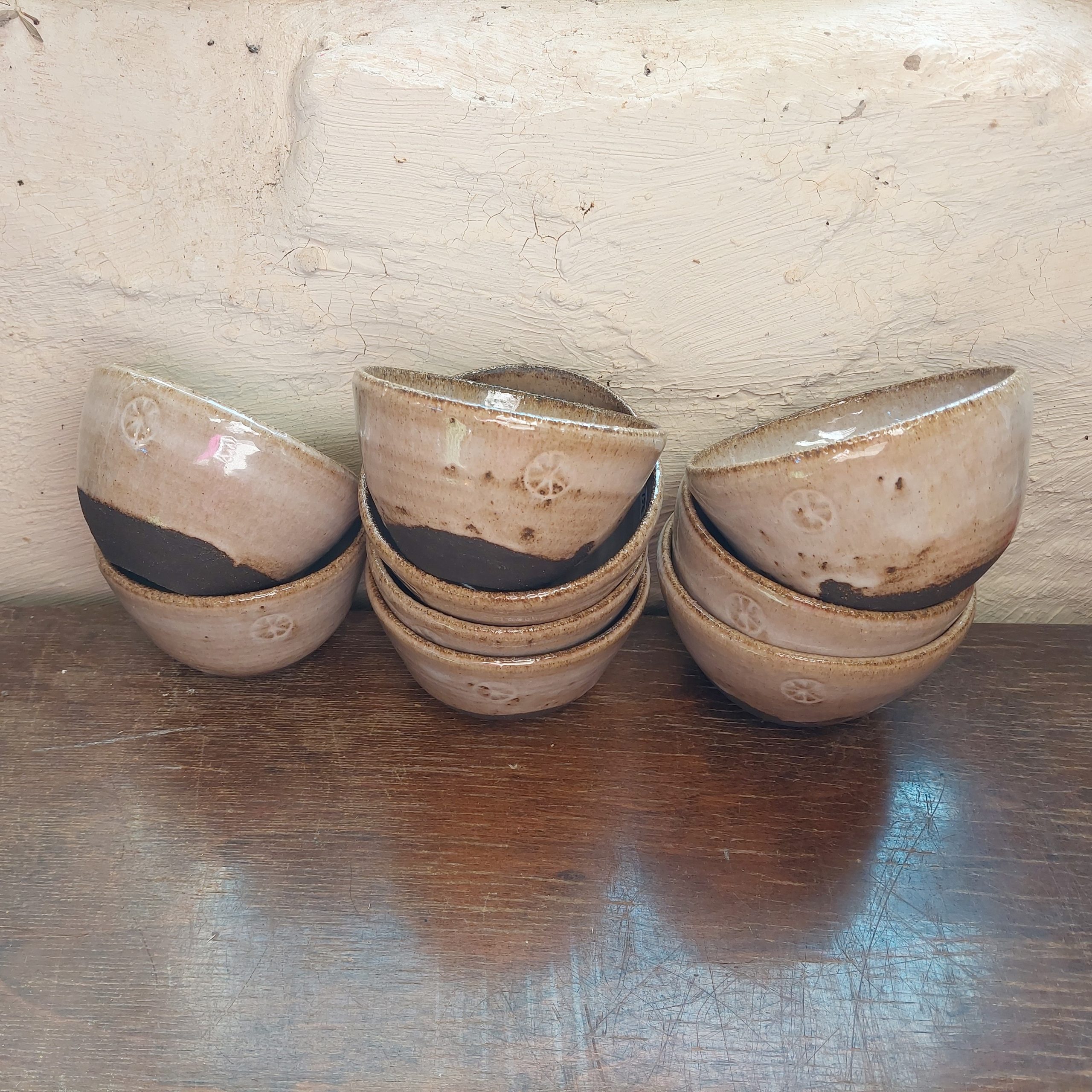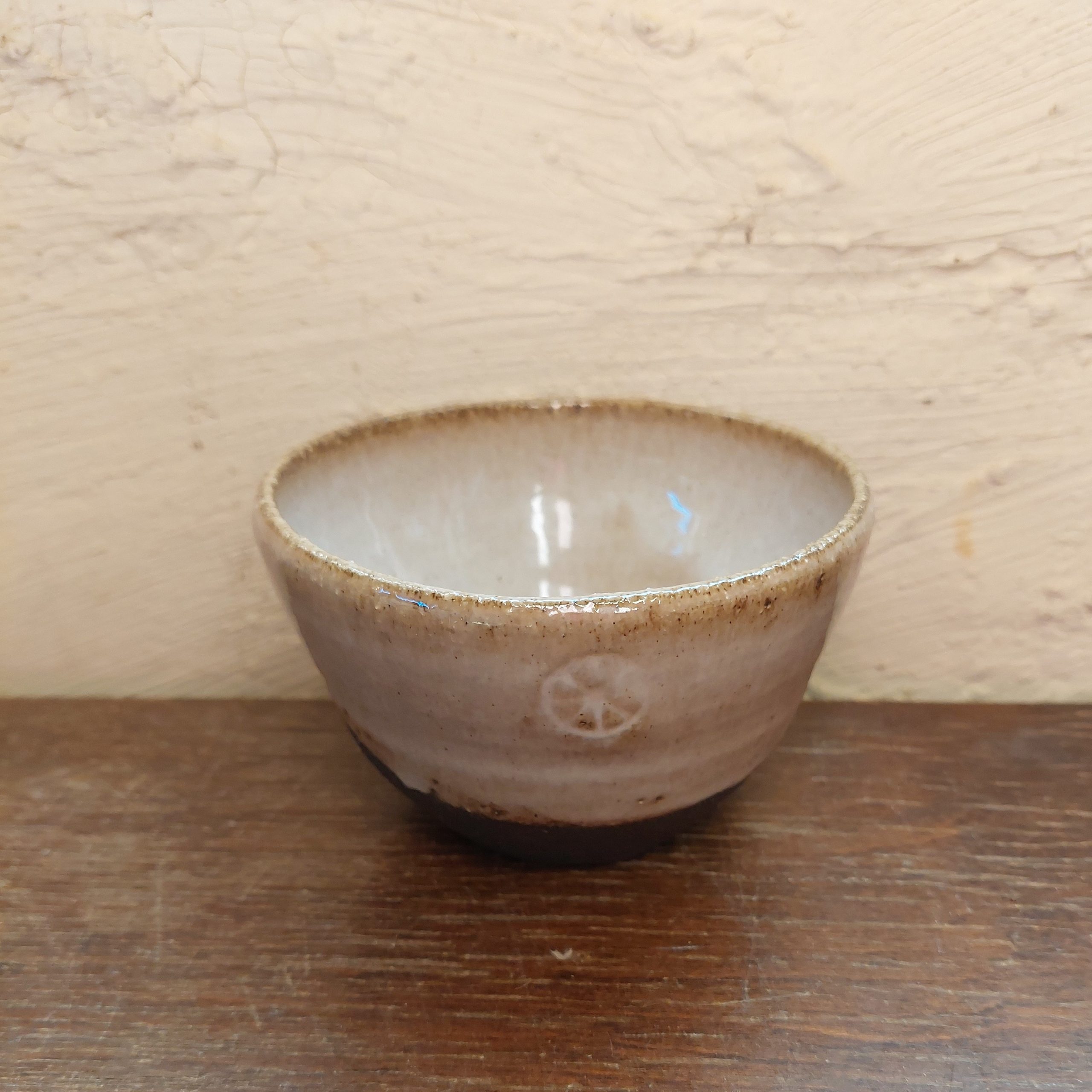 Vaalea kulho mustasta savesta vaalealla lasitteella